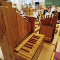 Žiaci mohli vidieť rapkáče, píšťale, portatívy – malé prenosné organy….No najväčší záujem mala veľká fujara – trombita. Žiaci si mohli nástroje zobrať do rúk, vypočuť si rôzne zvuky a samozrejme si zaspievať