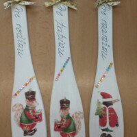 - Decoupage techniku na drevo (servítková technika), pomocou ktorej vyrábali originálne dekorácie.